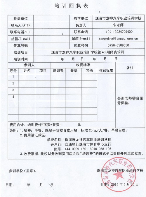 3、報(bào)名回執(zhí)表需在培訓(xùn)開(kāi)始前3日,回傳至我校。