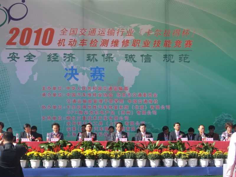 10月14日-15日,由交通運(yùn)輸部舉辦的全國(guó)交通運(yùn)輸行業(yè)“卡爾拉得杯”機(jī)動(dòng)車(chē)檢測(cè)維修職業(yè)技能競(jìng)賽決賽在北京交通運(yùn)輸部管理干部學(xué)院舉行。來(lái)自全國(guó)24個(gè)省(區(qū)、市)的238名選手參加了本次競(jìng)賽決賽。交通運(yùn)輸部副部長(zhǎng)馮正霖出席開(kāi)幕式并宣布決賽開(kāi)始,競(jìng)賽組委會(huì)主任、交通運(yùn)輸部人事勞動(dòng)司司長(zhǎng)兼評(píng)價(jià)中心主任何捷講話(huà)。本次競(jìng)賽活動(dòng)龍神公司設(shè)立產(chǎn)品展覽攤位,展出包括競(jìng)賽產(chǎn)品在內(nèi)共計(jì)100余件,得到了領(lǐng)導(dǎo)及院校的一致好評(píng)。